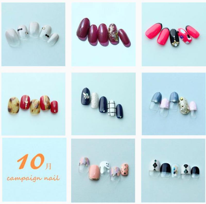 10月キャンペーンネイルのお知らせです。 フランキンセンスネイルでは毎月デザインが変わるキャンペーンネイルがございます♪ 一番上の段 2種類より選択の¥5,900 二番目の段 3種類より選択の¥7,900 三番目の段 3種類より選択の¥8,900 の3コース、計8種類がございます! 季節ごとのネイルアートをお楽しみに♪