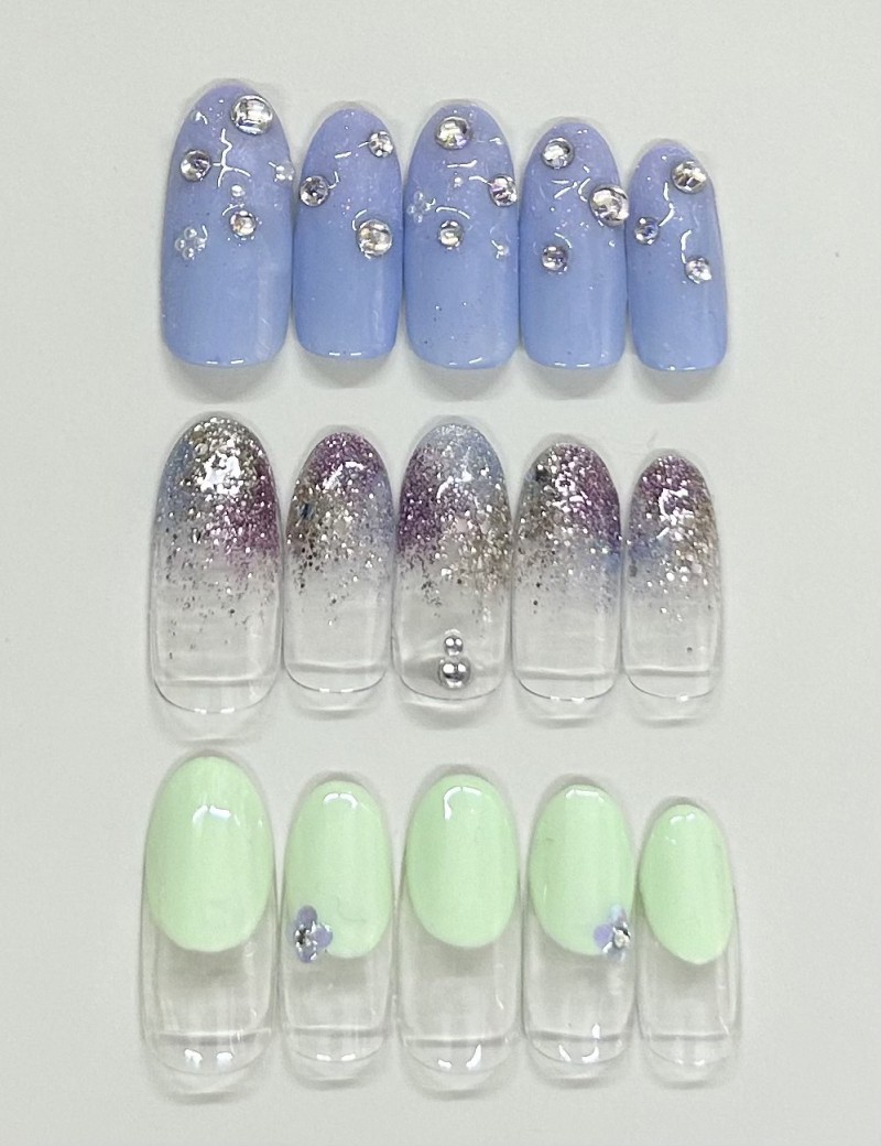 爽やかなブルーにストーンのきらめきをプラスして、梅雨を涼しく乗り切る指先に♪