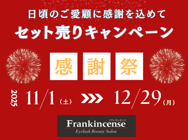 1年に1度の【感謝祭】が11月1日(土)~スタート! 人気アイテムをお得にまとめ買いできる特別期間です。 ・開催期間:11月1日(土)~12月29日(月) 数量限定のため、なくなり次第終了となります! 気になる方はお早めにご来店ください★ フランキンセンス